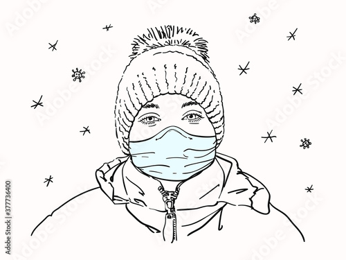 Doctor plastic surgeon drawing incision lines with marker on female face, flat vector illustration. Plastic surgery, cosmetic procedure. Aesthetic surgery. Facial rejuvenation.