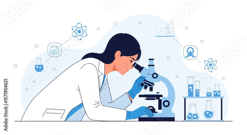 Doctor plastic surgeon drawing incision lines with marker on female face, flat vector illustration. Plastic surgery, cosmetic procedure. Chin, cheek enhancement. Facial contouring.