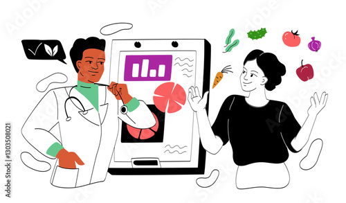 Female doctor psychologist talking to patient, flat vector illustration. Psychotherapy session, mental health, psychiatrist counseling, psychology.
