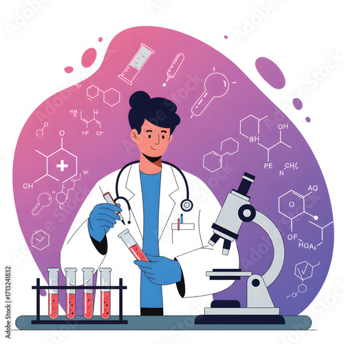 Doctor team cutting intestinal microflora vector. Flora bowel diagnosis and treatment. Microorganism detection and research. Medicine and healthcare