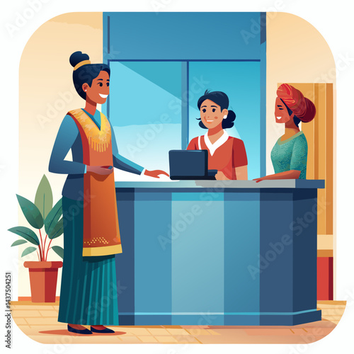 Doctor therapist, physician female examining patient male with stethoscope, flat vector illustration. Doctors appointment, consultation, examination. Medicine and health care.