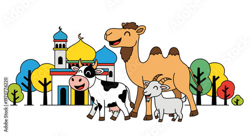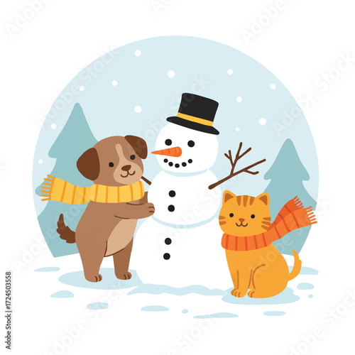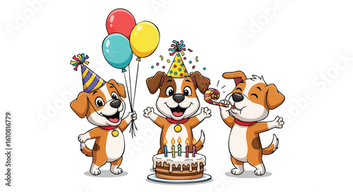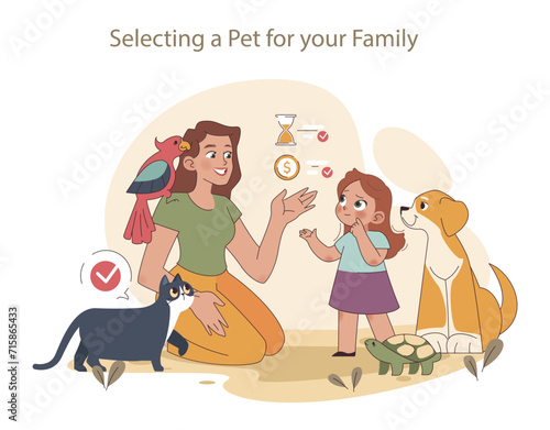 Vector illustration of tiny characters man pet owner keeping big dog on leash, woman with bone and other man with dry food. Dog products and supplies composition for pet shop website, web banner etc.