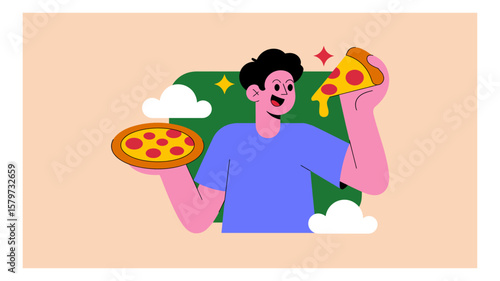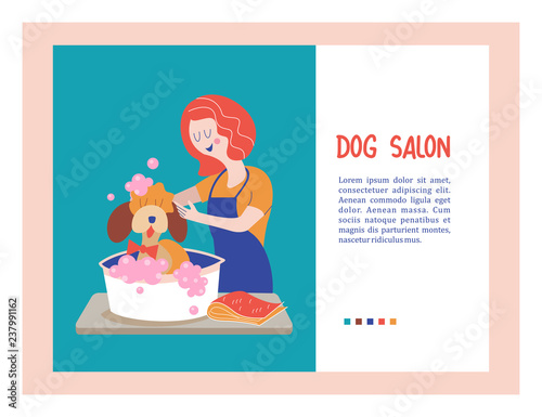 Dog eats sausage with her owner from dinning table. Home pet vector illustration. Woman is doing yoga meditation next to her dog. Animal lover lifestyle.