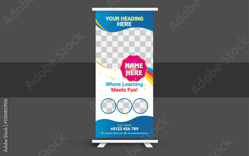 Dog food vector realistic illustration. Paper bag, doy-pack plastic bag, bowl with dry food, canned food on blue background. New premium dog food brand advertising poster.