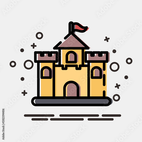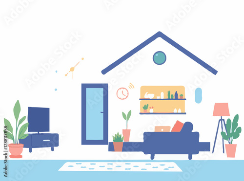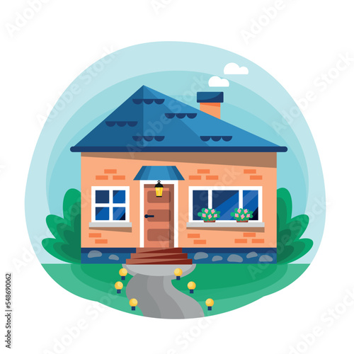 Dog in the house vector flat style design illustration. Doghouse, collar, food bowl, bones, shampoo, brush and scissors. Pet care, dog grooming supplies for web banner, website page etc.