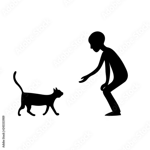 Vector illustration of man training his dog, running, playing with his four-legged friend. Pet owner and his puppy flat style design element, icon isolated on white background.
