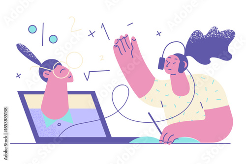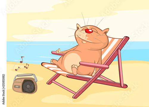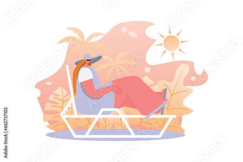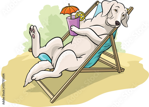 Dog rest on beach vector. Vacation relax icon. Cute animal reading story book sitting on deck chair enjoy summer travel on season holiday at seaside illustration isolated on white background