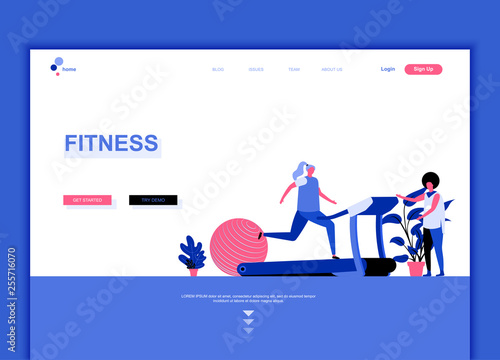 Dog walking in public park. Woman with coffee walks in a city park. Vector web site design template. Landing page website concept illustration.