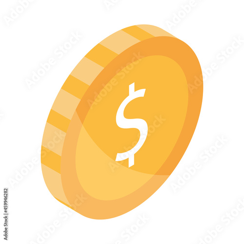 Dollar money gold coin vector. Currency cash icon. Bank exchange service logo isolated on white background