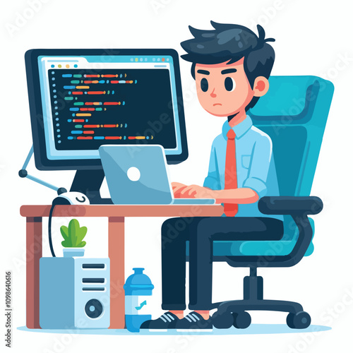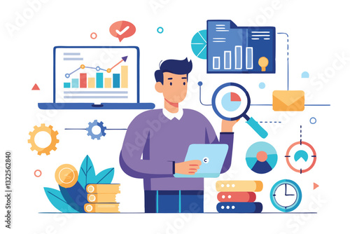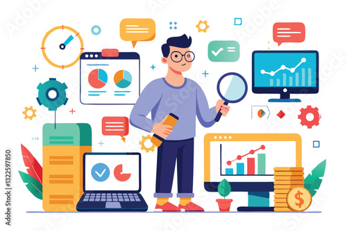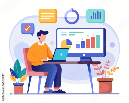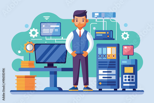 Domestic personal assistance robot brings coffee to his owner at home. Robotics technology concept vector illustration.