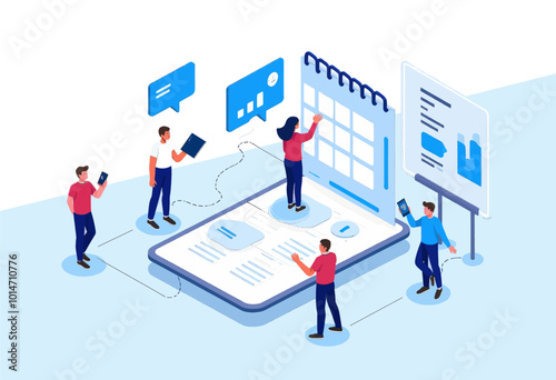 Domino effect or chain reaction in business, flat vector isometric illustration. Businessman escaping from falling dominoes. Business failure, crisis concept.