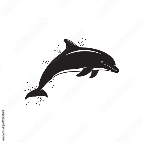 Double exposure vector layered paper cut jumping dolphin silhouette and underwater sea cave with coral reef, fish. Beautiful trendy marine composition for card, poster, banner, website page etc.