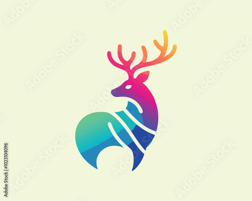 Double exposure vector layered paper cut wild deer head silhouette with nature landscape inside. Beautiful composition for card, poster, banner, website page etc.