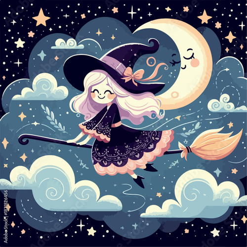 Beautiful girl with long wavy hair dreaming to catch a star, vector illustration in paper art modern craft style. Success, career, happiness, wealth concept.