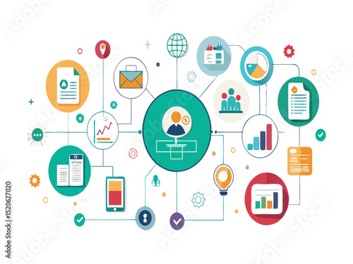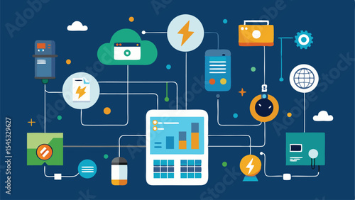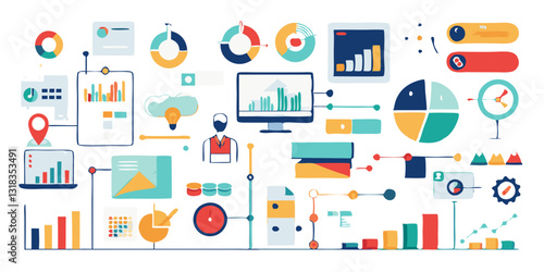 Drone delivery concept vector illustration with charts for delivery company. Modern express pizza, shoes and clothes delivery by unmanned aircraft flat symbols, icons.