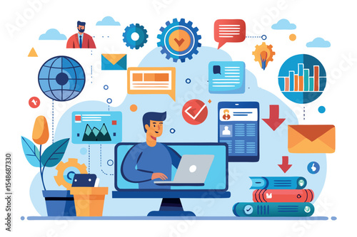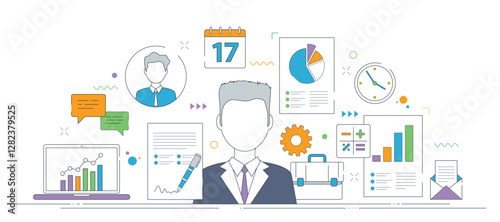 Drone delivery concept vector illustration with charts for delivery company. Modern express pizza, shoes and clothes delivery by quadcopter flat symbols, icons isolated on white background.