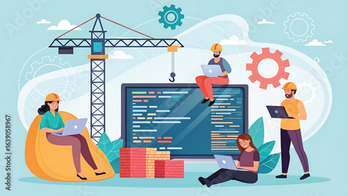 Big city and male characters launching drone, vector illustration. Unmanned aerial vehicle, drone technology concept for web banner, website page etc.
