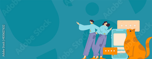 International ecommerce and shipping services, vector illustration. E-commerce and parcel delivery composition with characters, delivery truck for web banner, website page etc.