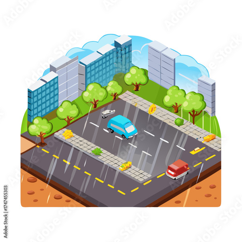 Earthquake diagram. Vector isometric Earth fault scrap with epicenter, focus and wavefronts. Natural disasters and seismic activity concept for educational poster, scientific infographic, presentation