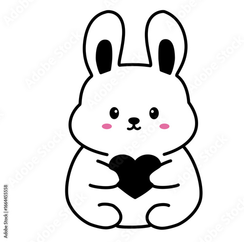 Easter bunny vector. Cute rabbit cartoon icon. Fluffy hare holding painted egg in paw illustration isolated on white background. Animal character for spring holiday greeting card design