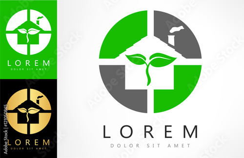 Eco city concept poster in paper art origami style. Vector illustration paper cut design. Green town with wind power turbines. Round sign