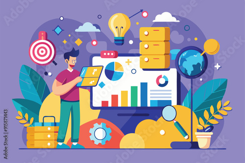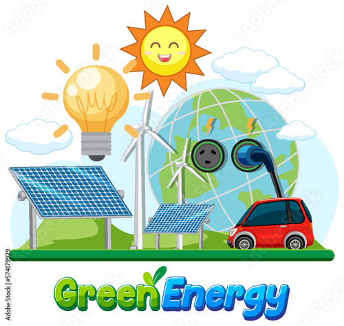 Vector flat style design illustration of planet Earth and bag with recycle symbols, light bulb connected to solar panels and battery, dollar coins. Ecology concept for web banner, website page etc.