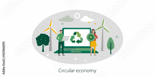Ecology landing page template. Vector flat style design concept for green environmental website and mobile site development. Planet Earth with recycle symbol, light bulb connected to solar panel etc.