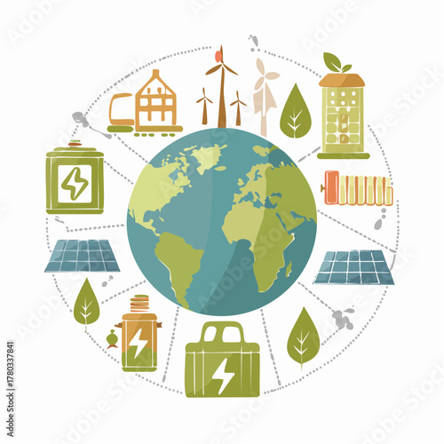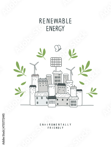 Ecology landing page template. Vector flat style design concept for environmental website and mobile site development. Wind turbines, planet Earth with recycle symbol, hand holding green sprout etc.