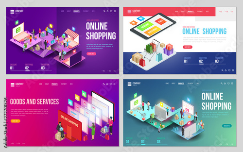 Ecommerce business and online retail concept. Woman buy product in online store. Delivery service. Vector web site design template. Landing page website illustration.
