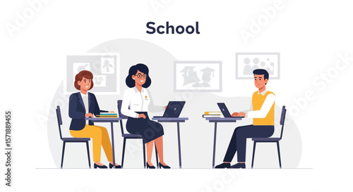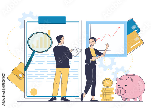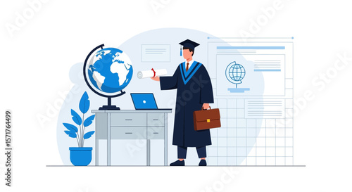 Education concept vector illustration, flat linear style design. Successful graduate with diploma is successful businessman making money.