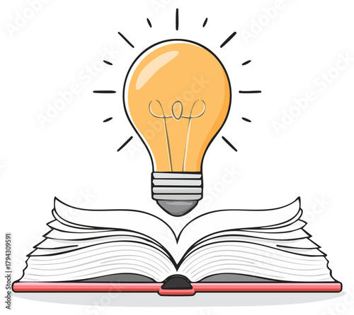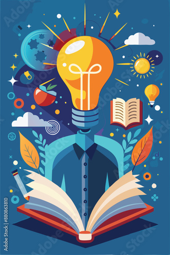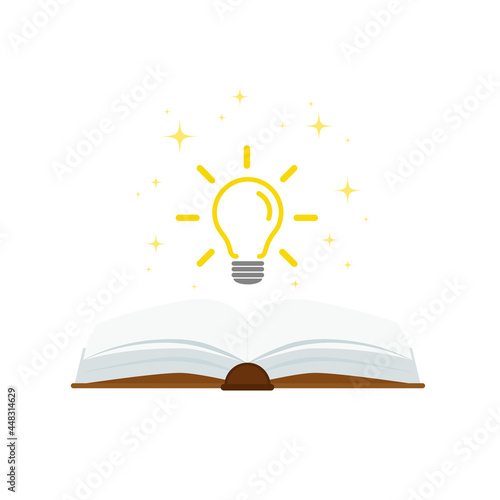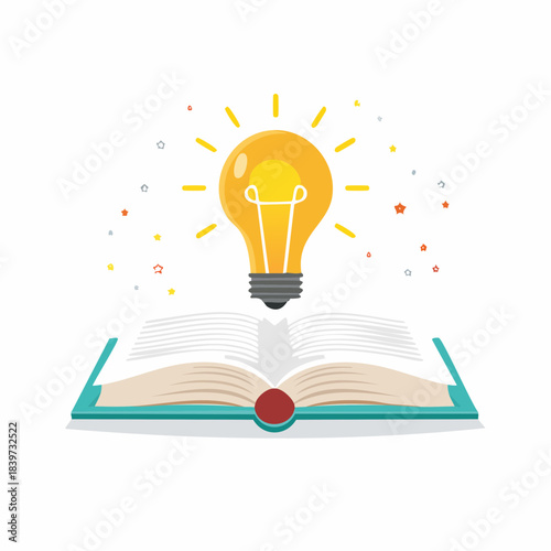 Vector layered paper cut craft style open book with innovation light bulb, dna helix, lab flask, other education and science symbols. Education and science learning concept creative composition.