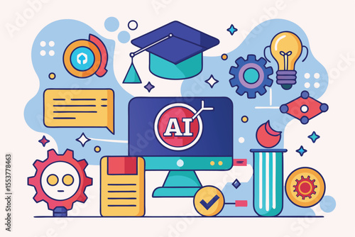 Vector education infographic template design with graduation cap and educational icons. Thin line flat style illustration.
