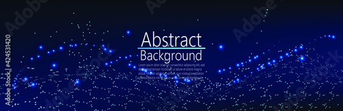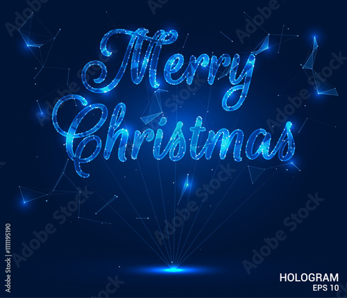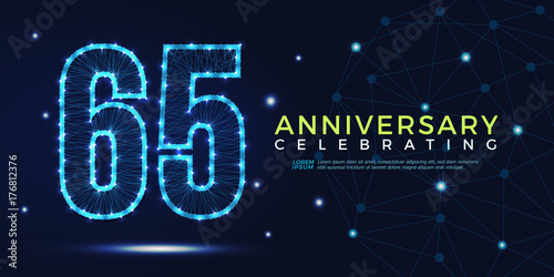 Eid al-adha or festival of sacrifice islamic holiday greeting card vector design template. Crescent moon, clouds and eid al-adha lettering. Polygonal art with scattered particles and light effects.