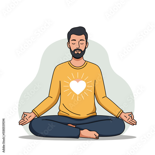 Elderly man meditating practicing yoga breathing exercise vector icon isolated on white background