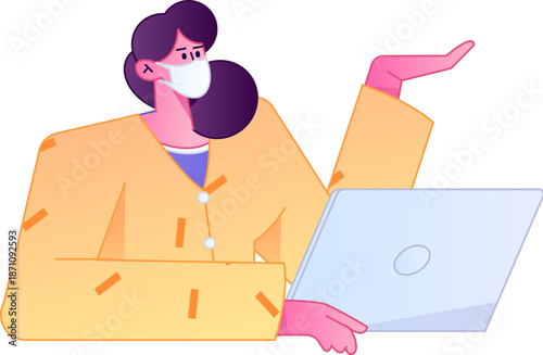 Elderly woman browsing internet using laptop sitting in bed at home vector icon isolated on white background.