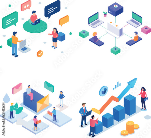 Election and voting isometric icon set, flat vector isolated illustration. Voter, ballot box, ballot paper, political candidate avatar, check mark, charts and other infographic elements.