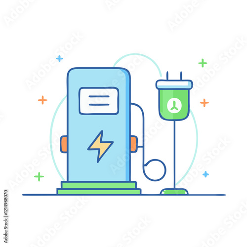 Electric charger station over cityscape 3d paper cut vector illustration. Public charging service. Electrical terminal for hybrid car refill. Green eco energy and environment conservation