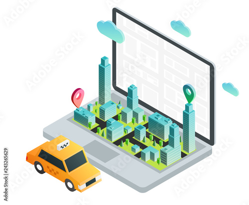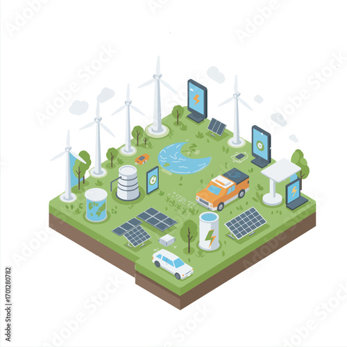 Electric vehicle charging station, electromobile and city public bus, vector flat isometric illustration. Electric refueling, eco transport.