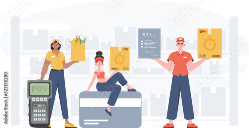 Electric scooter rental, flat vector illustration. Eco city transport parking, docking station. Scooter sharing service.