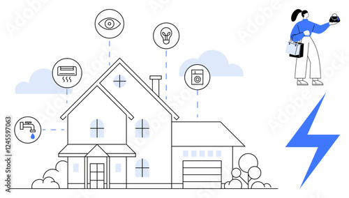 Electrical safety hazards vector poster banner design template. House in which socket outlet caught fire.