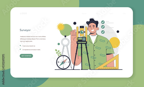 Vector illustration of smiling worker standing on ladder and fitting light bulb into a socket. Electrician flat style design element.