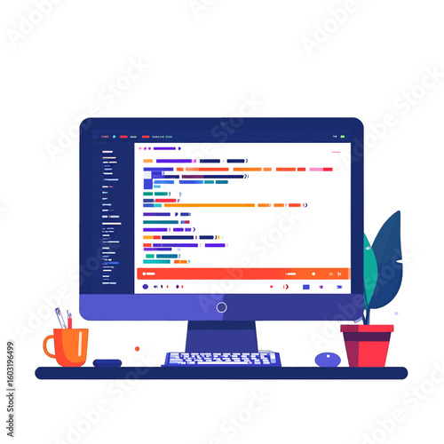 Electronic book concept vector illustration in flat style. Stack of books and e-book reader.