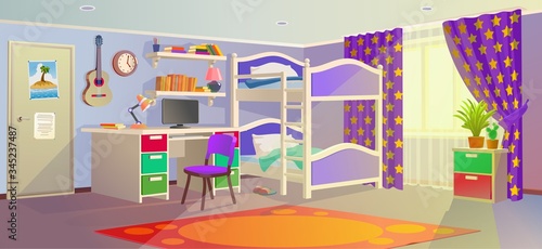 Modern electronics store interior, vector flat illustration. Fridge, washing machine, other consumer electronic products and home appliances on shelves for poster, banner etc.