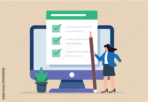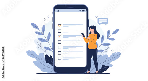 Vector flat illustration of big smartphone with letter in opened envelope, read message icon, tiny people sending and receiving electronic mail. Email newsletter and subscription, email marketing.