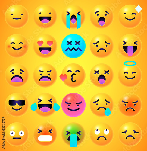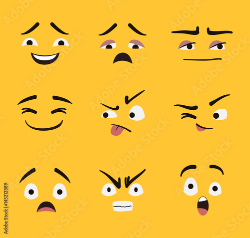 Emoji faces for emoticon constructor, vector illustration. Smile male character creator.