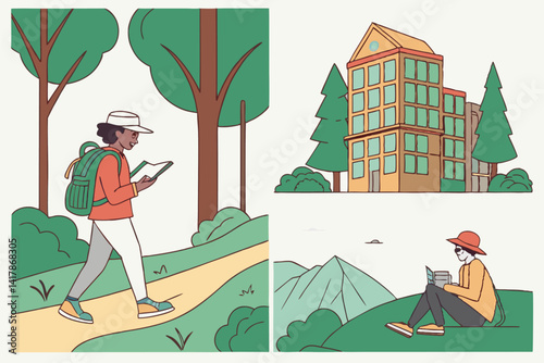 Giant boss hands holding happy subordinate tiny male and female characters, flat vector illustration. Workplace safety, employee care, wellbeing, benefits. Corporate insurance.