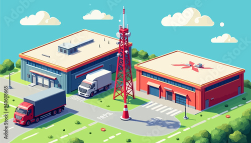 Empty musical stage with music instrument prepared in park for open air rock punk party festival and band performance vector illustration