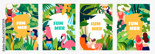 End of coronavirus quarantine. Happy people walking in the park removing medical face masks and throwing them away, vector flat illustration. Characters enjoying outdoor walk. Covid-19 lockdown end.