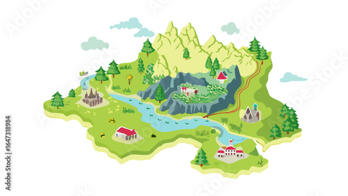 Environment pollution, vector illustration in paper cut craft style. Poisoned soil with plastic garbage landfill under forest. Save green forest from plastic trash, stop nature pollution.