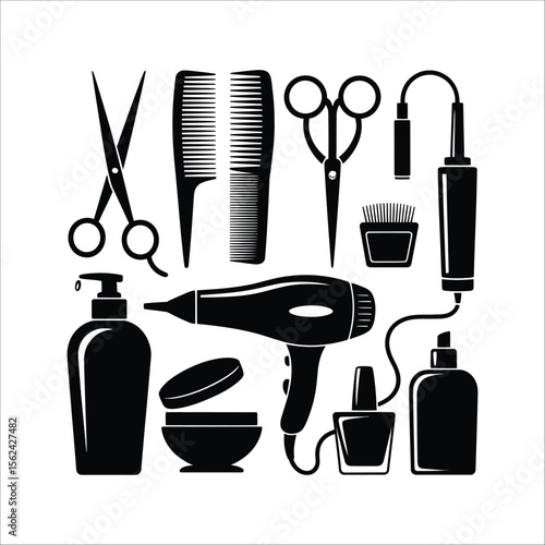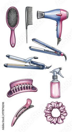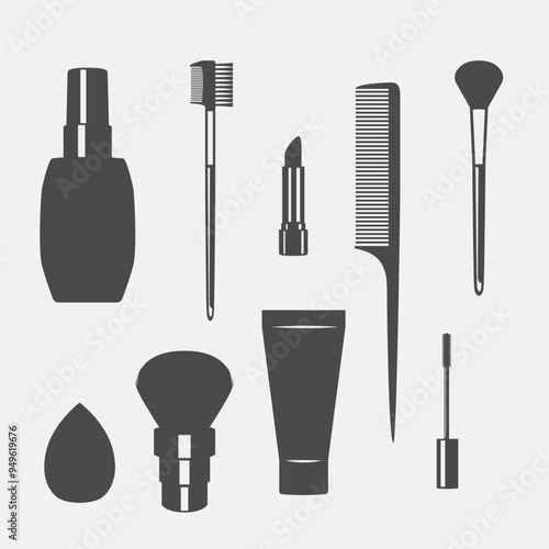 Face massage supplies vector illustration. Different gouache jade scraper, rollers and essence oil in bottle for beauty cosmetic services